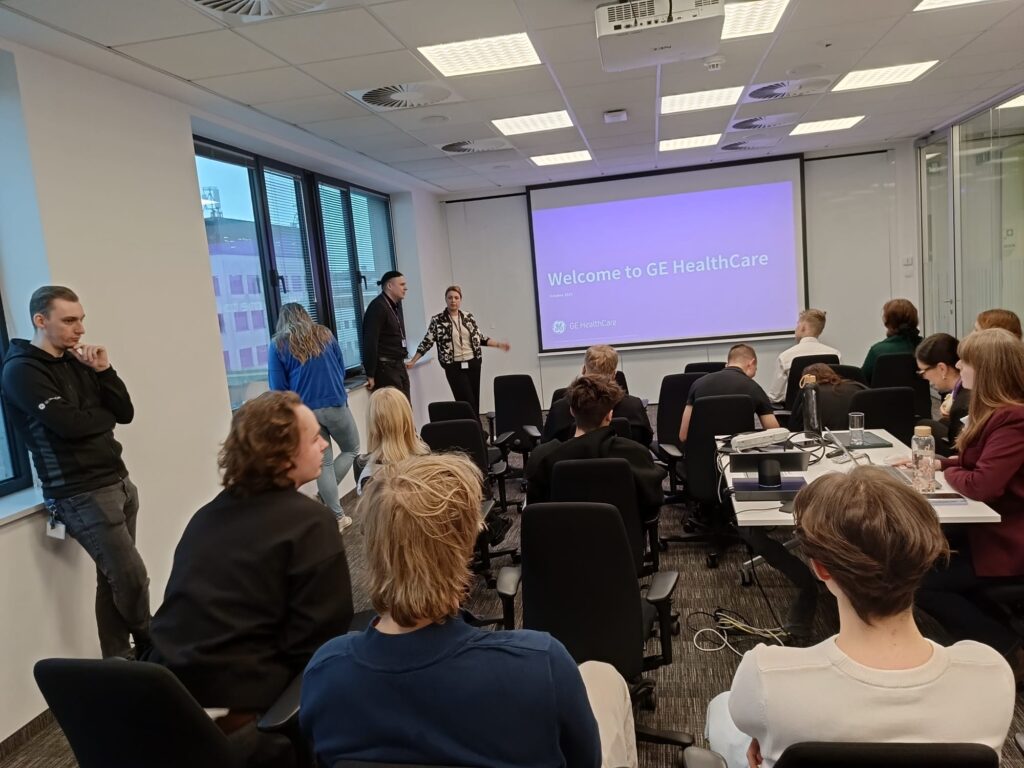 Dzięki uprzejmości pana Jacka Drabika Dyrektora Departamentu Edukacji w Krakowie, mamy możliwość zorganizowania wizyt dla uczniów, którzy brali udział w konkursie „Mój pierwszy start up”, w topowych krakowskich firmach. Wspólnie z panią Sylwią Hormańską nawiązałyśmy współpracę z tymi firmami i opracowaliśmy wspólnie harmonogram wyjść na cały rok 2025/2026. Co miesiąc odwiedzimy jedną firmę. 24.10.25 byliśmy w firmie GE HealthCare. Było inspirująco, przesympatycznie i rozwojowo. Otrzymaliśmy bardzo pozytywny feedback od obecnych uczniów i nauczycieli. Jesteśmy przekonani, że aktywnie przyczyniamy się do zwiększenia świadomości wśród młodych ludzi wchodzących na rynek pracy.