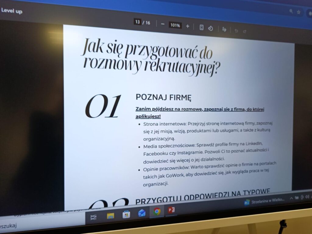 W drugiej części spotkania uczniowie poznali przebieg rozmowy kwalifikacyjnej oraz