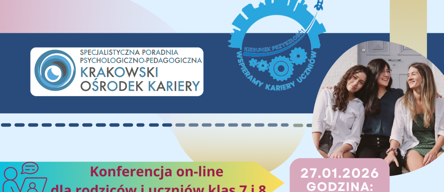 W dniu 27.01.2026 w godz. 17.00–19.00 odbędzie się kolejna konferencja on-line dla rodziców i uczniów klas VIII pt.: “Wybieram szkołę i zawód”.