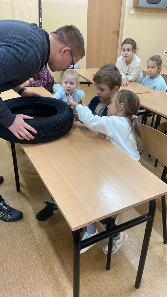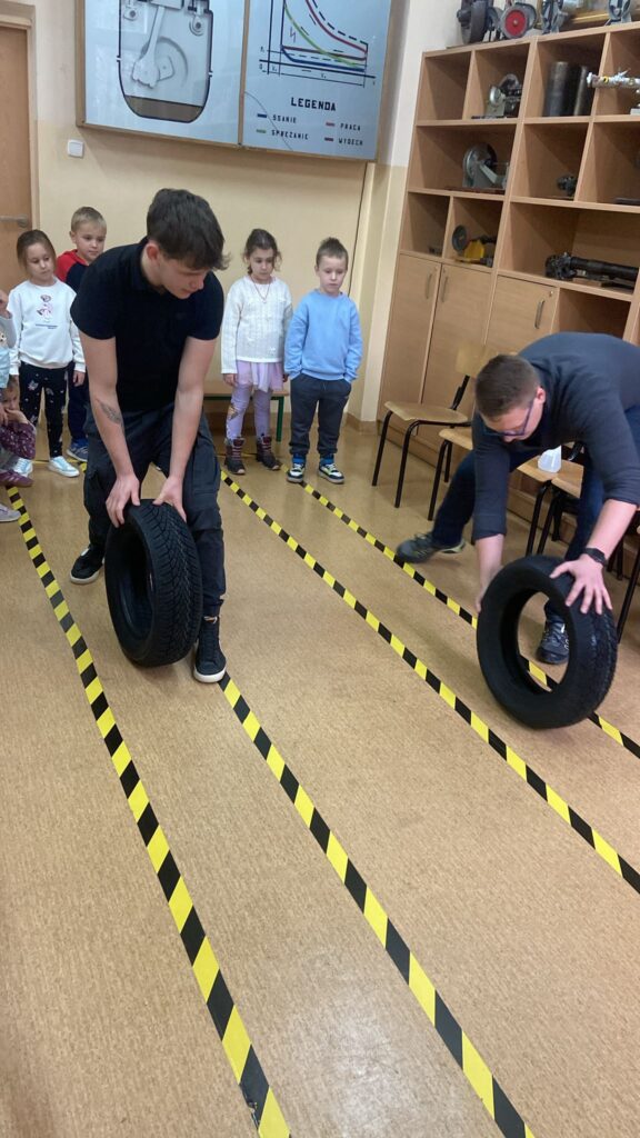 Dzieci uczęszczające do Samorządowego Przedszkola nr 11 odwiedziły szkołę techniczno- branżową i wzięły udział w zajęciach warsztatowych pt. „Koła w ruchu”. Podczas spotkania przedszkolaki miały okazję zobaczyć jak wygląda i działa podnośnik, manometr, jak wygląda droga hamowania na suchej i mokrej nawierzchni. Uczniowie szkoły wraz z nauczycielami poświęcili czas, by w przystępny sposób przybliżyć motoryzacyjne zagadnienia.